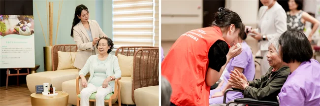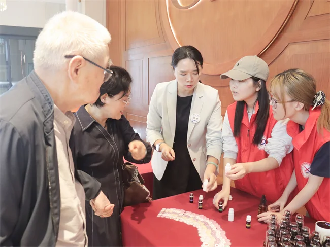 欧葆庭中国区质量与护理总监祁佳带跟大家进行了芳香疗法的使用分享,从精油的萃取、到芳香疗法的保健方法,以及对认知功能、失眠、心肺功能的作用,结合中国香药理论,真正达到了中西交融的效果,获得了现场长辈的喜爱与好评。