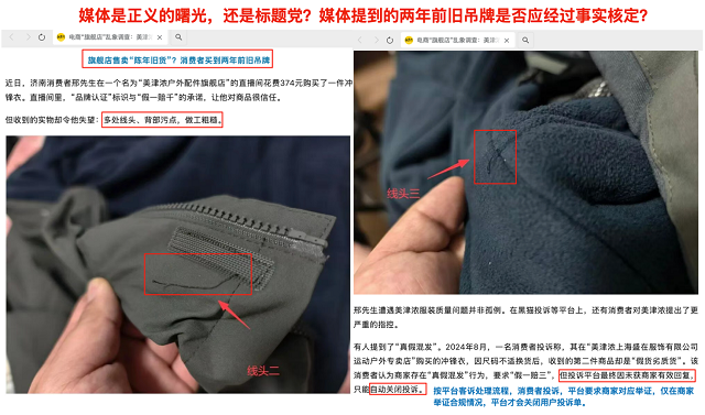 本来这种事情并不值得多大关注,然而在今年的双十一,同样的两个名字出现在某黄河媒体之上,最有意思的部份是:"黑标是假冒产品",对质量进行一翻攻击,具体内容是图片上两条5,6量米的线头,然后一堆'文字'控诉,针对防伪标推论出企业,并顺滕摸瓜指出黑标有问题云云。
