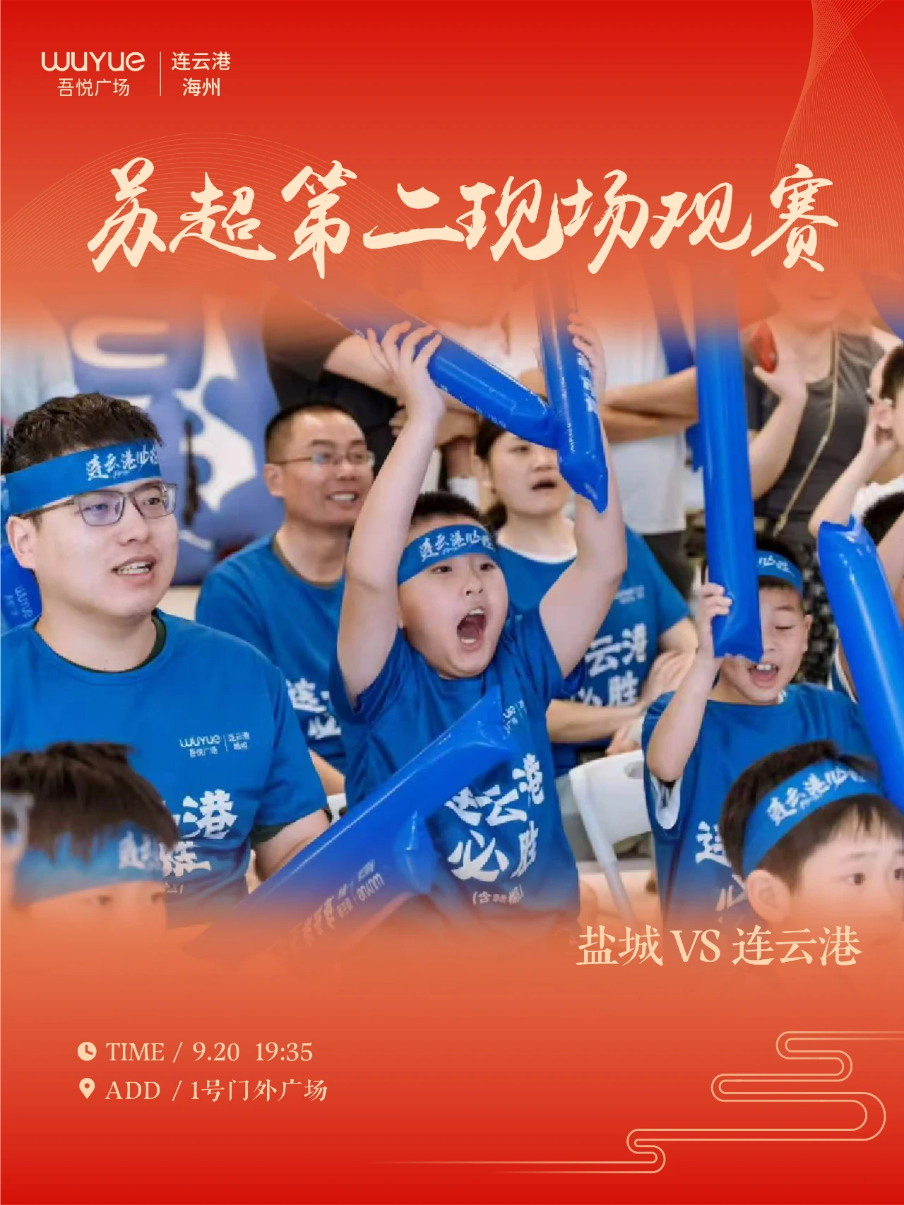 9月20日19:35,1号门外广场苏超第二现场连云港vs盐城大战 !快来现场呐喊助威,感受足球热血 !