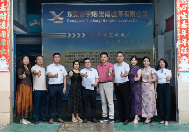 在发展模式上,洪斌打造的“工贸一体”模式成为公司的核心竞争力。宇翔皮革专注于高端PU合成革的生产研发,鑫鸿皮革则负责市场拓展与海外接单,两家公司相辅相成、协同发展,既发挥了生产端的技术优势,又打通了销售端的市场渠道。目前,公司产品已广泛应用于鞋类、箱包、手袋、玩具、家具、装饰装潢、汽车革、电子3C等多个领域,销售范围不仅覆盖国内市场,更远销东南亚、欧美等地区,成为CK、Tommy、阿玛尼、vivo、摩托罗拉、小米、华为等知名品牌的合作伙伴。在洪斌的带领下,公司始终坚持“稳中求进”的发展策略,不盲目追求规模扩张,而是一步一个脚印,在品质坚守与模式创新中,不断拓展市场版图。这份深耕行业的专业与坚守,也让洪斌收获了商会的认可与肯定,成功晋升东莞安庆商会常务副会长。东莞安庆商会终身荣誉会长许绪宝曾带队走访滨海片区会员企业,首站便抵达宇翔皮革,受到洪斌的热情接待。座谈中,洪斌向走访团详细介绍了公司 “工厂 + 贸易” 一体化运营的发展模式,以及产品在多领域的应用与海内外市场布局,让走访团对企业的稳健发展有了深入了解。座谈会后,洪斌带领走访团深入生产车间实地考察,现场讲解生产环节的技术特点、工艺流程及质量控制措施,公司规范的操作流程与严格的品控标准,赢得走访团成员的一致高度赞赏。许绪宝会长更是代表商会对洪斌晋升常务副会长表示热烈祝贺,肯定其带领企业在品质把控与经营管理上的优异表现,认为其发展模式为商会会员企业传递了积极力量。