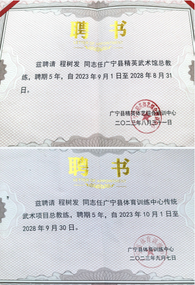 程树发的教学理念,核心在于“德艺双修”。在师徒传承中,他始终强调“传艺先传德,习武先习德”的理念,将人格教育置于武术教育的首位。弟子何予在全国赛中获银牌,更在省赛中夺得双银奖,展现了卓越的技艺水平;陈子龙从最初“不感兴趣”到后来“早起练武”,完成了从被动到主动的转变;更有顽劣学生拜入门下,经他悉心引导后变得沉稳懂事。这些成长与成就,正是程树发“以武育人”理念的生动体现。